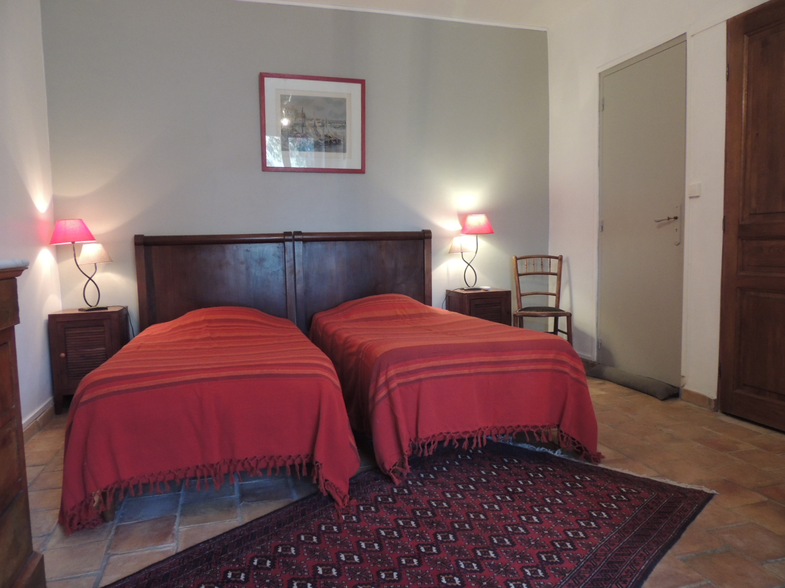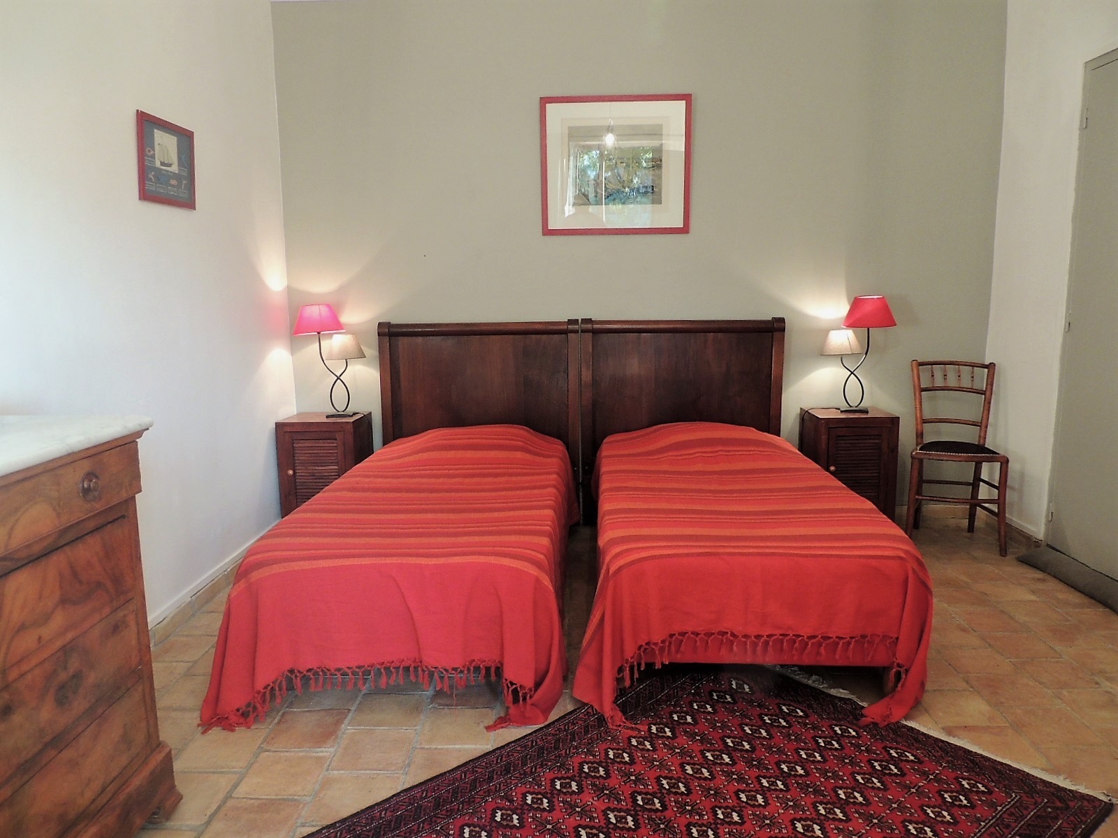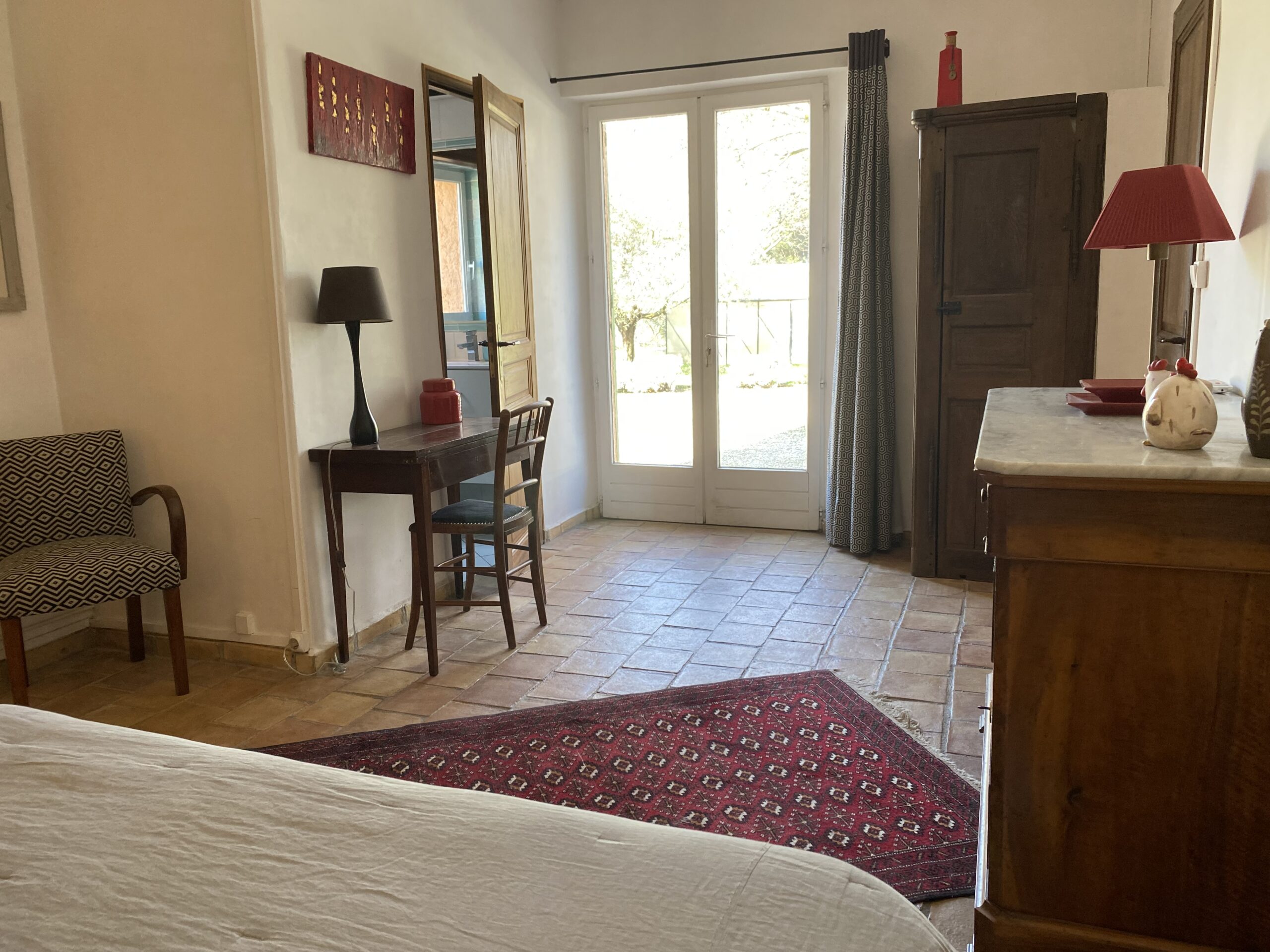 La chambre Orange séduit par son ambiance chaleureuse et lumineuse, idéale pour un séjour placé sous le signe de la convivialité et du confort. Spacieuse et modulable, elle s’adapte parfaitement à vos besoins, que vous voyagiez en couple ou entre amis. Naturellement tempérée grâce à l’épaisseur des murs et à son exposition, elle reste agréable même en plein été — la climatisation est disponible, mais rarement nécessaire. Sa décoration aux teintes ensoleillées rappelle l’esprit du Sud et invite à la détente. Après une journée dans le Luberon, profitez d’un espace accueillant et reposant, pensé pour votre bien-être.